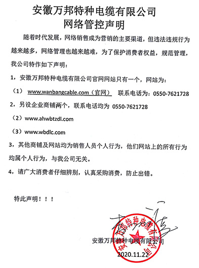鄭重聲明:安徽萬邦特種電纜有限公司官方網站為:www_wanbangcable_com.wlqml.cn,除此之外無任何子網站或合作網站,其余均為假冒偽劣。電話:0550-7621728 13485756353 地 址:安徽省天長市滁州高新技術產業開發區經四路29號